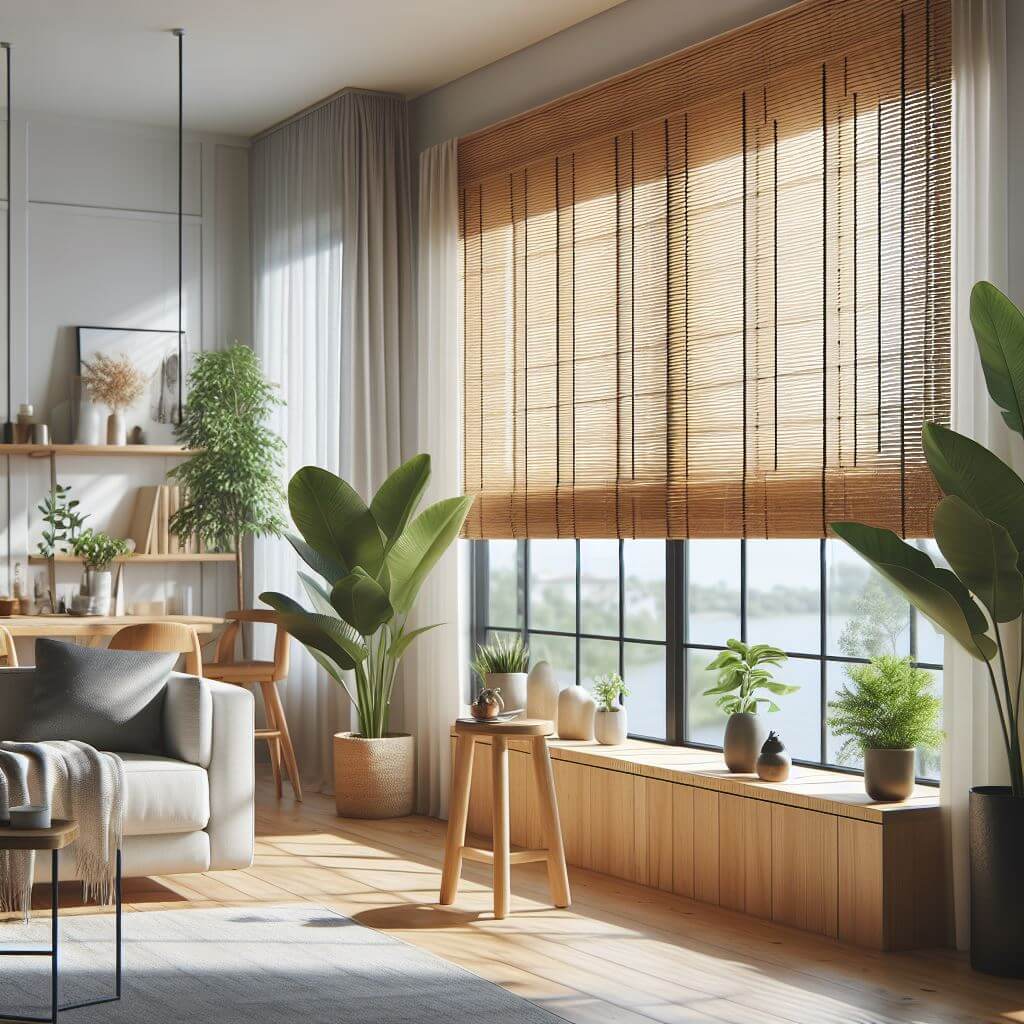 • Sfeer: Bamboe jaloezieën geven je interieur een exotische en natuurlijke sfeer. Bamboe is een materiaal dat veel warmte en karakter uitstraalt. Je kunt kiezen uit verschillende tinten, van licht tot donker, die elk hun eigen sfeer creëren. Bijvoorbeeld, als je een donkere kamer hebt, kun je kiezen voor lichte bamboe jaloezieën voor een fris en ruimtelijk effect, of voor donkere bamboe jaloezieën voor een knus en gezellig effect.
